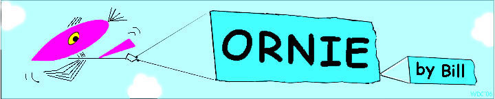 About Ornie: While doodling one day many years ago, a rather nerdy-looking bird appeared on the page. Unlike most doodles, this one caught my imagination, and I hung it on the wall behind my desk. Soon I named him Ornie as a representative ornithological specimen, and began to wonder what "take" such a nerdy bird might have on life. This led to occasions when Ornie seemed to speak to me, which led to the periodic recording (in cartoon form) of life, nature, and philosophy from a bird's point of view. Within a few years a substantial number of these Ornie episodes had accumulated in my home office file, but...what should be done with them? They did not fit any standard publishing mode or format, yet I thought that bird and nature lovers, at least, might enjoy them. So they are presented here for your entertainment, or at least your scrutiny. If you peruse these cartoons, please take a moment to tell me whether you liked any of them and why, and perhaps this will inspire more (or fewer). And, if you would like to re-publish any of them, or if you want to advertise bird- or nature-related products on this site, let me know. Please also enjoy my other "whimsies and oddities" at WDCohen.com. --Bill Cohen | bill@ornie.com | |||||||